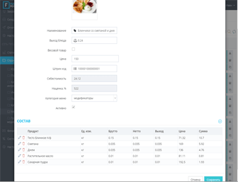 Ингредиенты, товары, блюда, полуфабрикаты, технологические карты, модификаторы